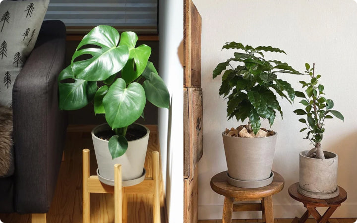 プランタースタンドで高さを出すのもおすすめ。また、四方が囲まれているスタンドであれば、ワンちゃんが触れてしまっても倒れにくくなります。