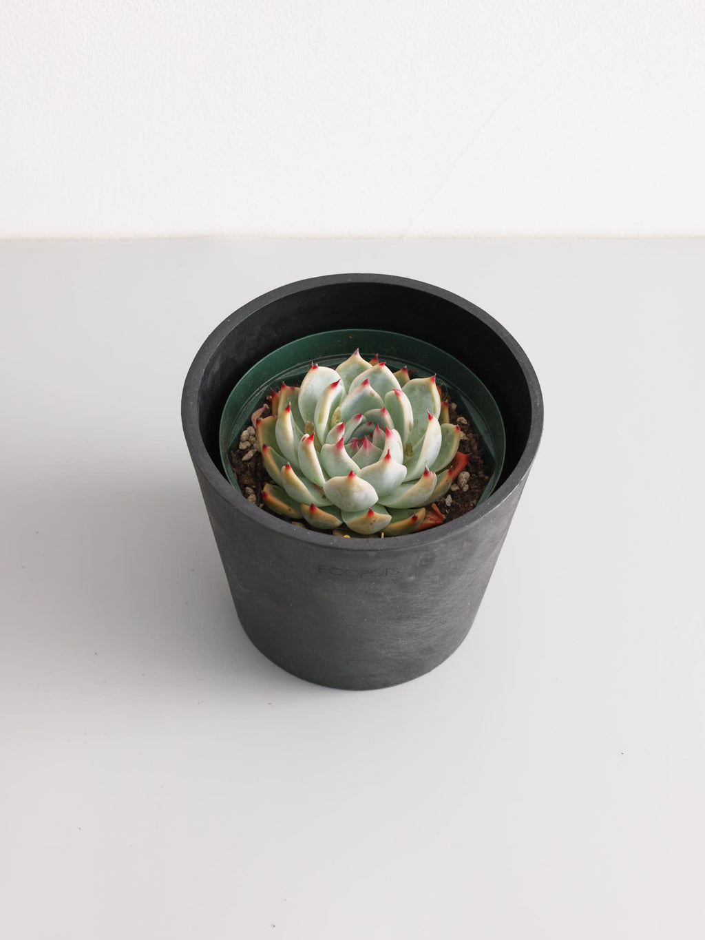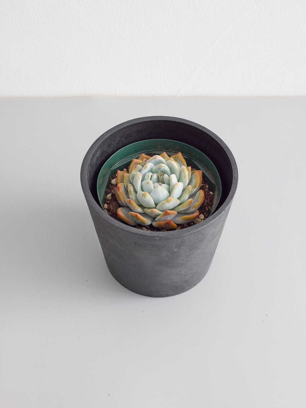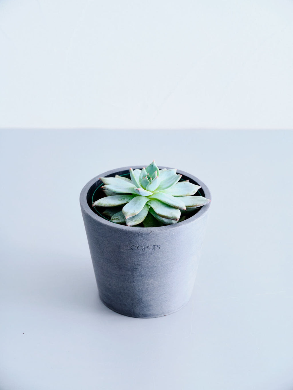 アンドプランツでは、すべての植物にこだわりのプランターをお付けしています。公式プランターとして、植物が引き立つミニマルなデザインとマットな質感が特徴的な「ECOPOTS」を採用。リサイクルプラスチック80%、ナチュラルストーン20%と、環境に配慮した素材で作られており、植物にやさしいサステナブルなアイテムです。