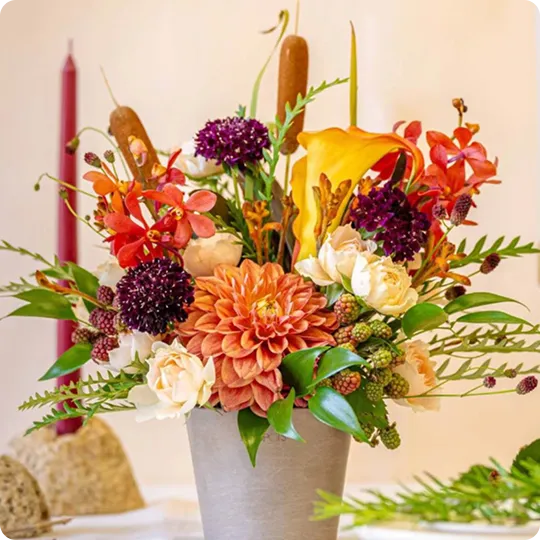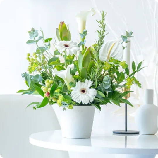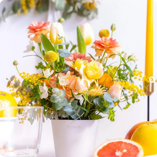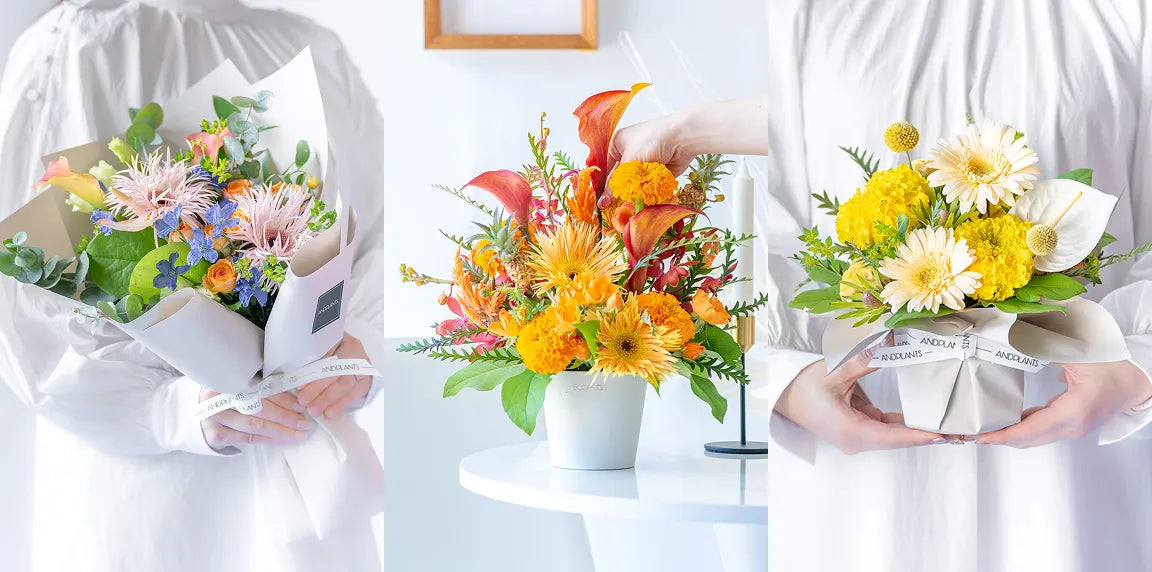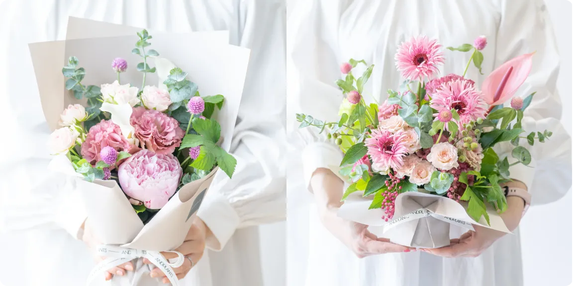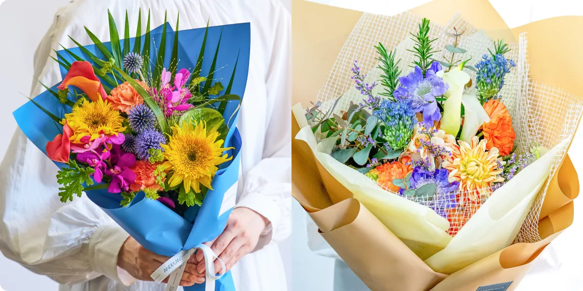 ご利用シーンやお好みの雰囲気・色合いなどをお伝えいただくだけで、経験豊富なフローリストがひとつひとつ丁寧に、理想の花をお作りします。