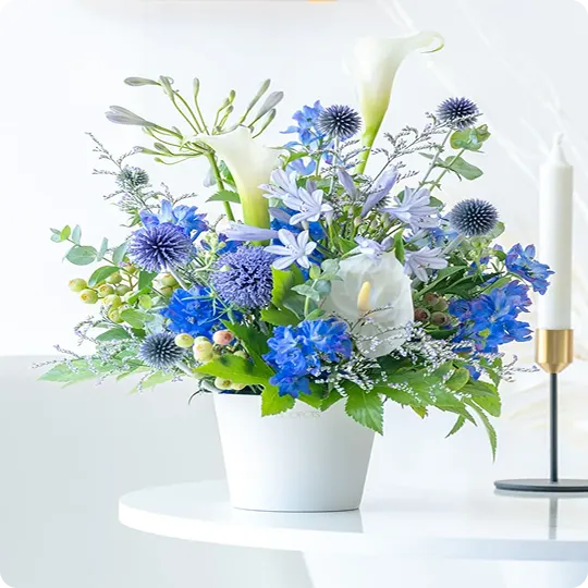 - 市場の状況により花材や色味のご要望に添えない場合がございます。その際は近しい雰囲気で制作いたします。