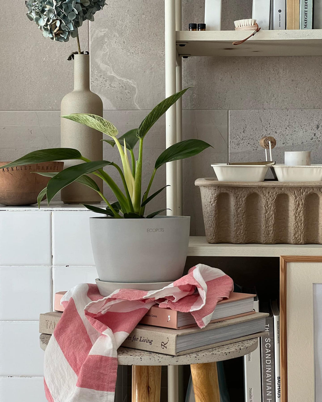 アンドプランツでは、すべての植物にこだわりのプランターをお付けしています。公式プランターとして、植物が引き立つミニマルなデザインとマットな質感が特徴的な「ECOPOTS」を採用。リサイクルプラスチック80%、ナチュラルストーン20%と、環境に配慮した素材で作られており、植物にやさしいサステナブルなアイテムです。