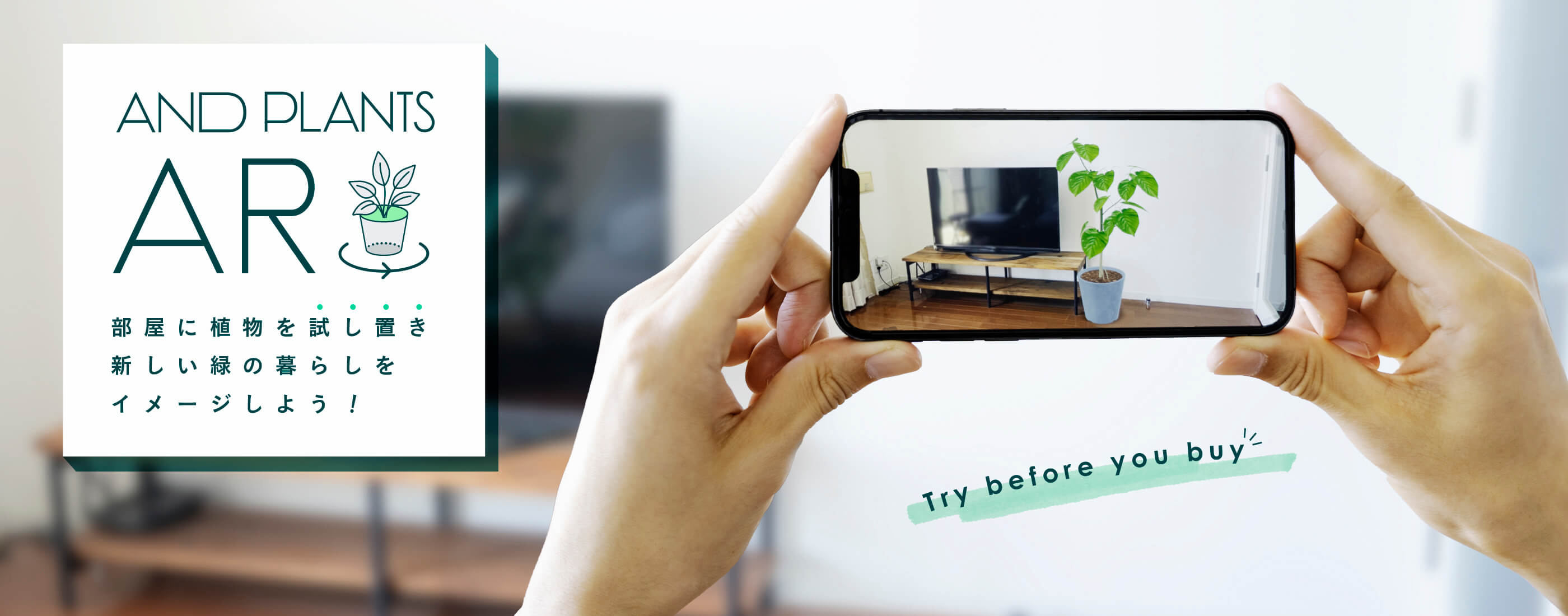 メジャーでテレビ横の空きスペースを測ったり、植物を持ってお店から帰っていざ置いてみたら思っていたのと違う、そんな経験を少しでもなくしたい、そんな想いからアンドプランツ