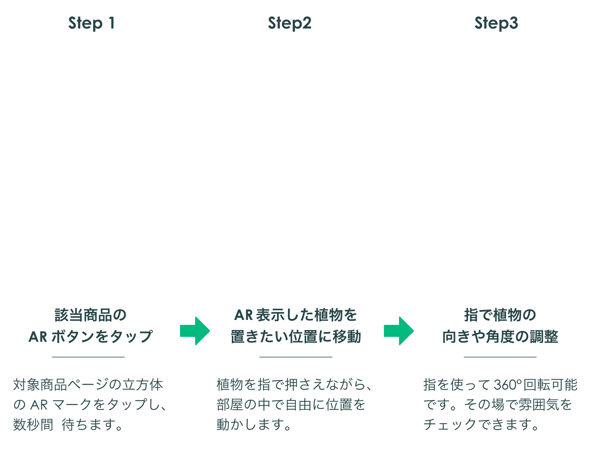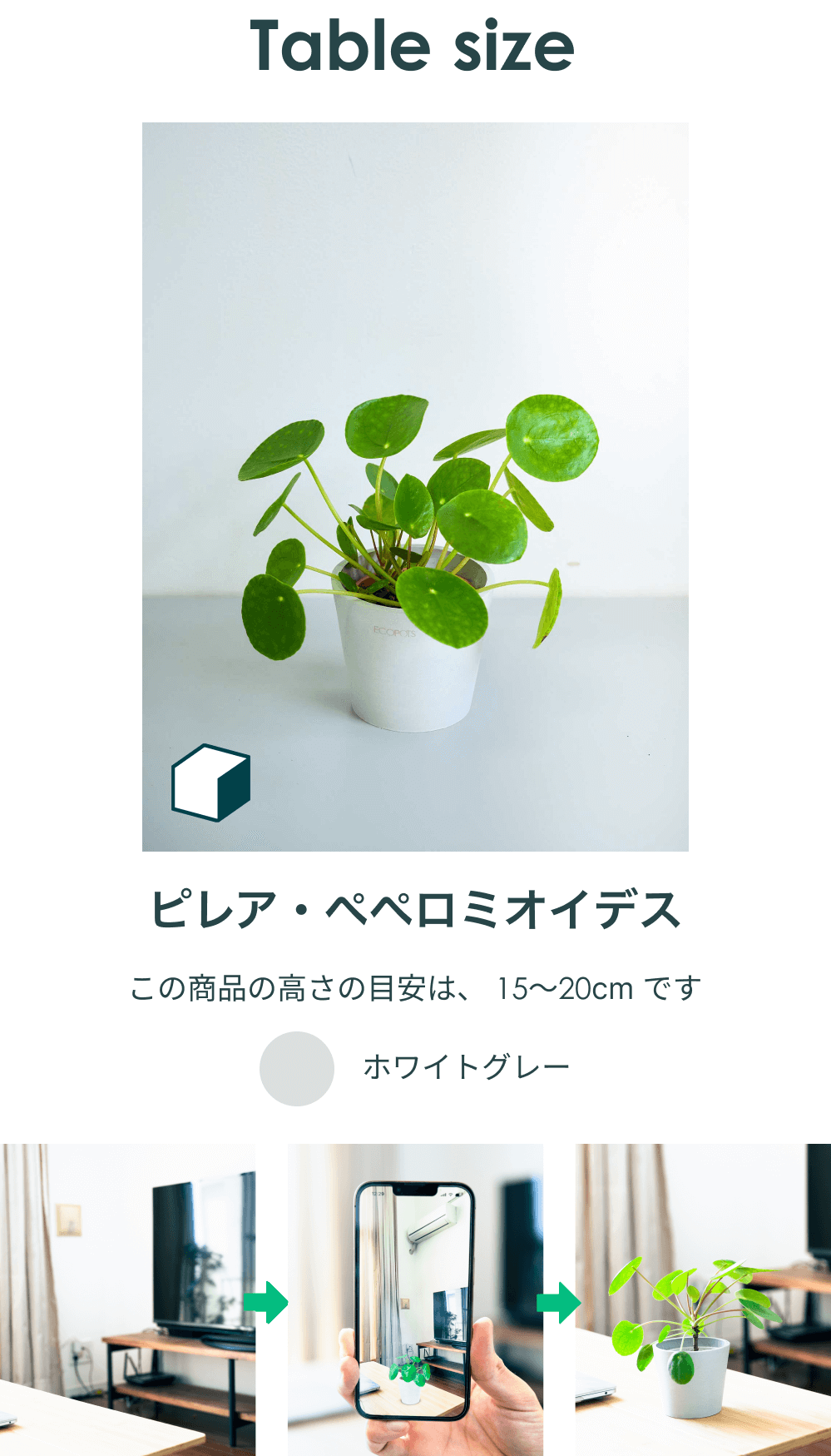 お店に行かなくても、実際に、部屋に植物を置いたらどんな雰囲気になるか、お家にいながら見た目やサイズ感が分かるといいなと思ったことはありませんか?