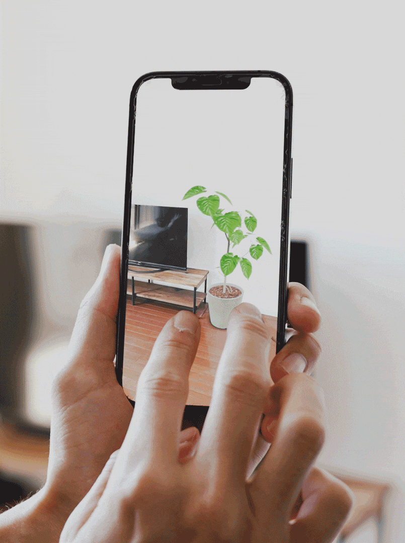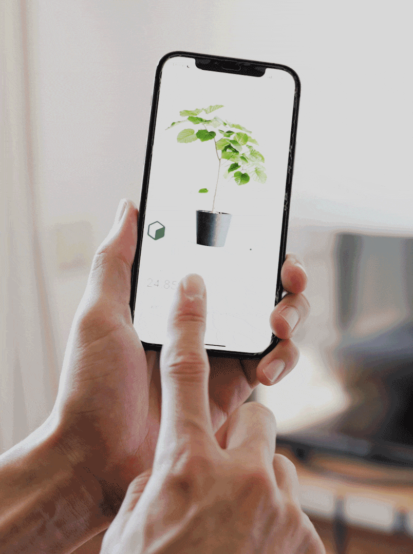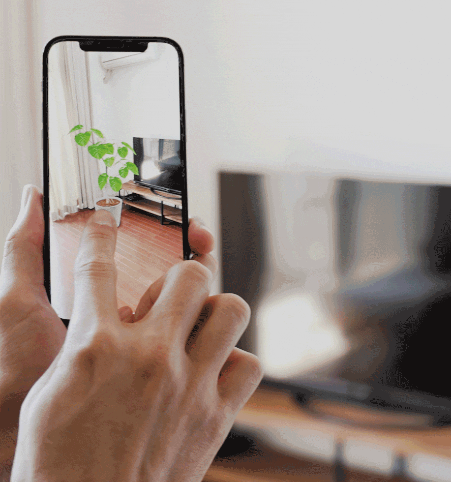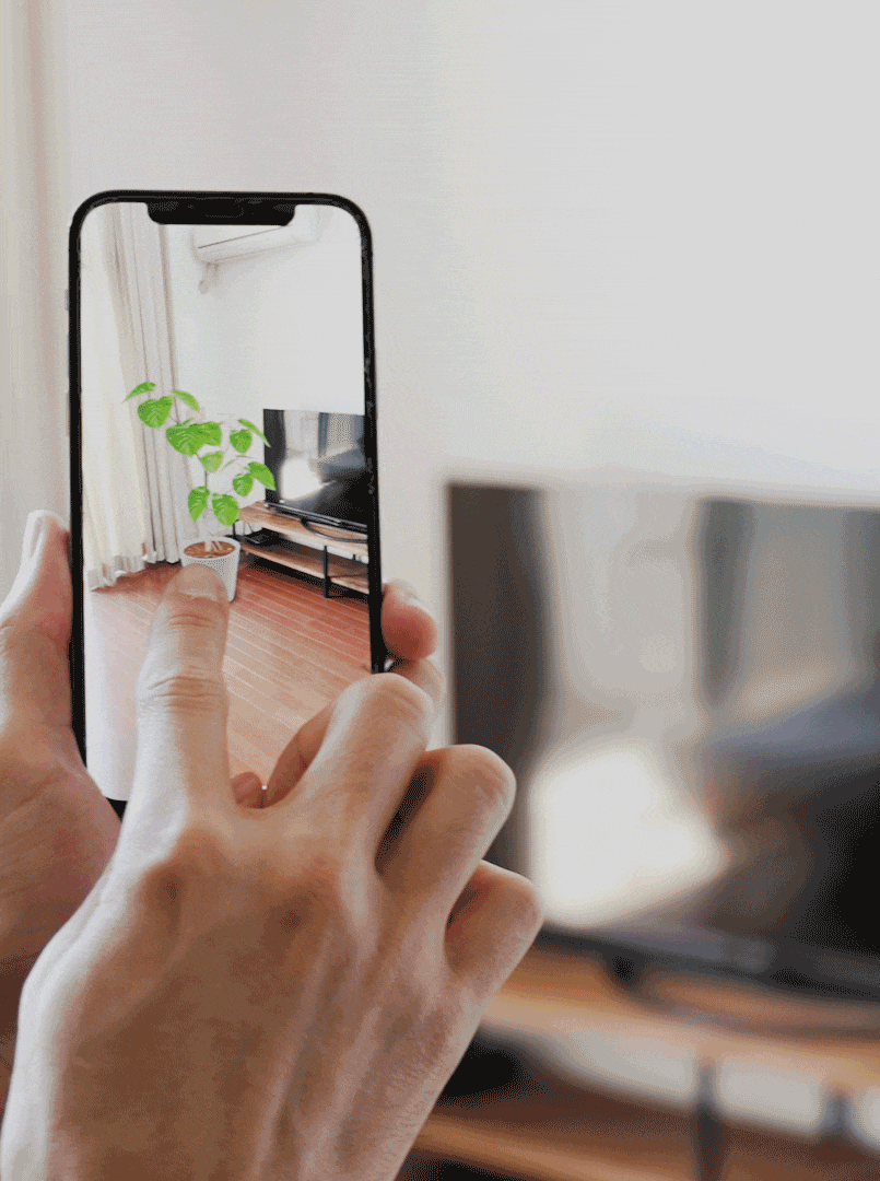 使い方はかんたん、スマホを用意してデジタル植物を家の中に置いてみるだけ。ソファに寝そべりながら部屋のレイアウトを考えてみませんか?