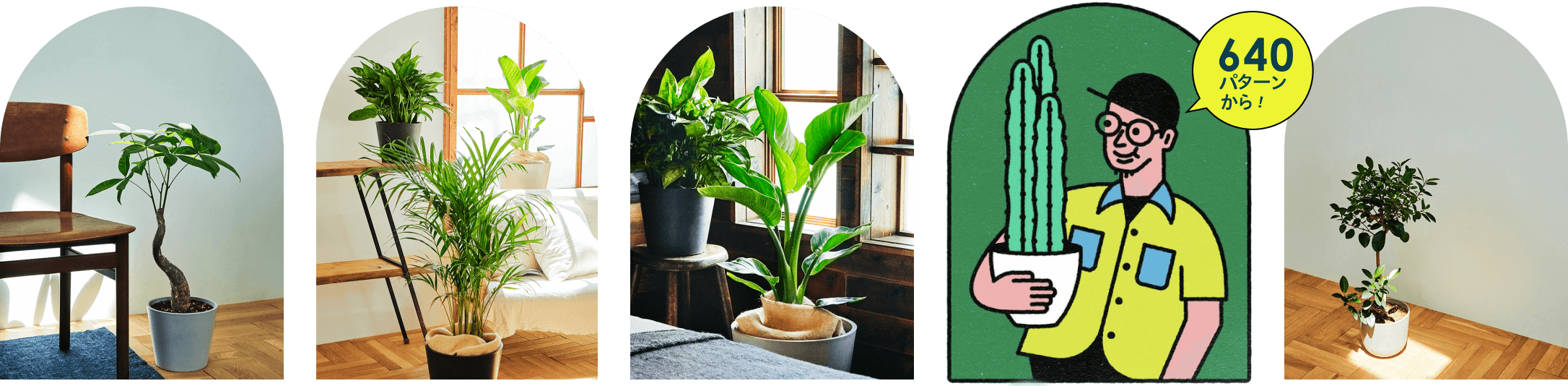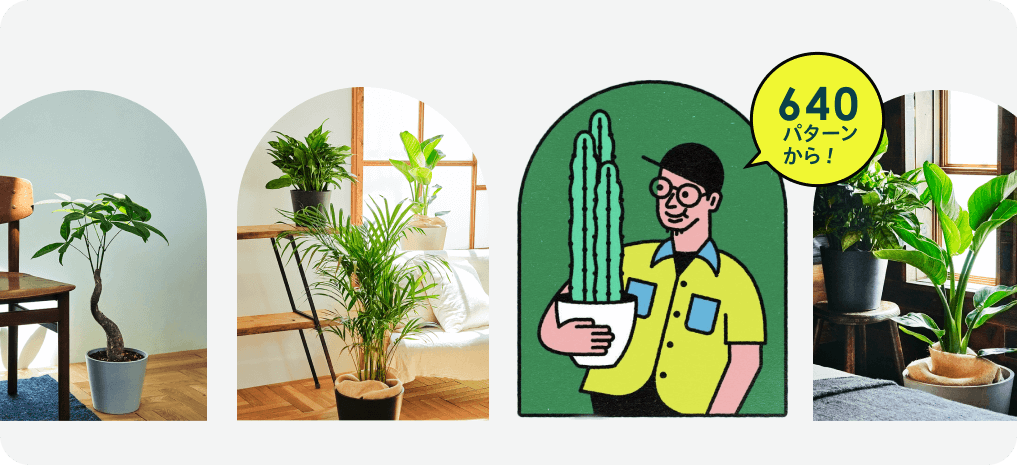 最大10個の質問に答えるだけで、140種類・640パターン以上の商品の中から、 あなたにぴったりの植物をお選びします。