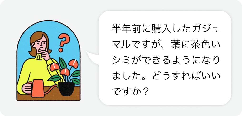 購入前の植物選びから、購入後の植物ケアまで。困ったらいつでも植物の専門家にLINEで相談が可能なので、初心者でも安心です。