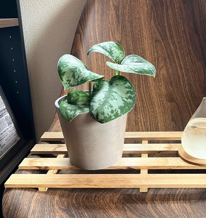 スキンダプサスは、シルバーグリーンの葉が特徴的な観葉植物です。耐陰性もあるので、日光があまり入らない屋内にも適しています。サイトイモ科の植物なので乾燥には強く、冬場は1〜2週間に1回のお水やりで生育が可能です。