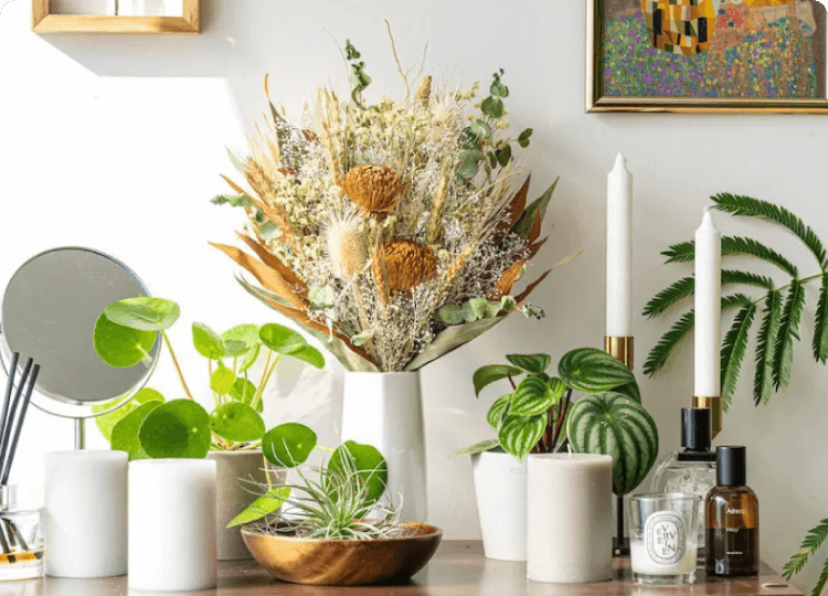 開店のお祝いを華やかに演出し、その後はインテリアとして長期間お店を彩るドライフラワー。お手入れの必要がなく、洗練された雰囲気になるためおしゃれなカフェなどに最適です。