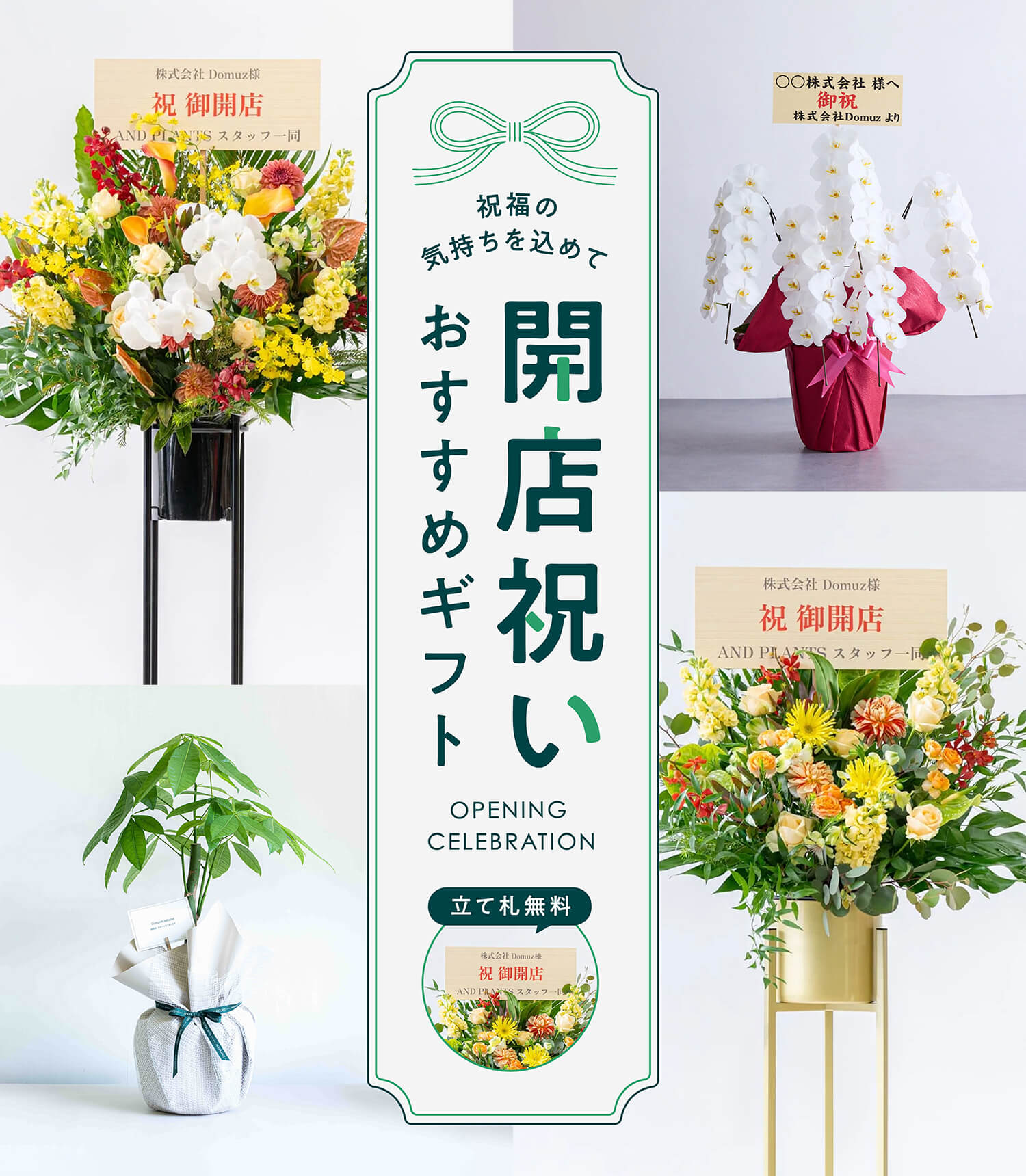 開店祝いが急に必要になったときでもご安心ください。正午までの注文で、最短翌日にお届けいたします。