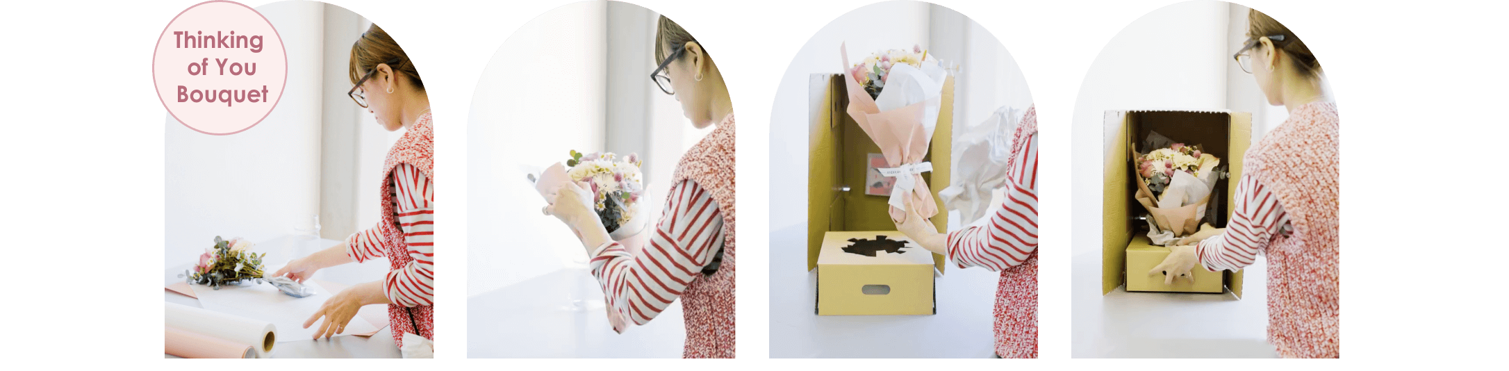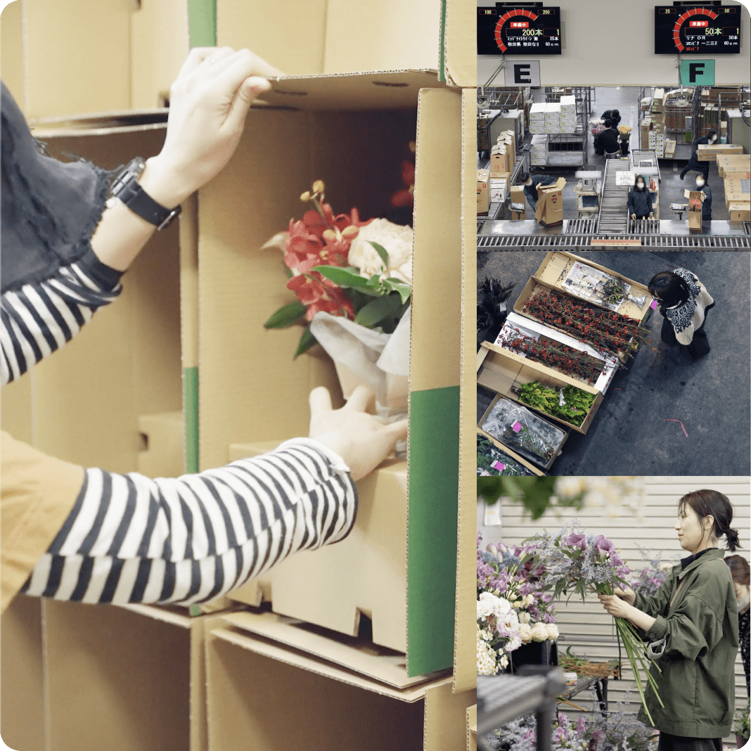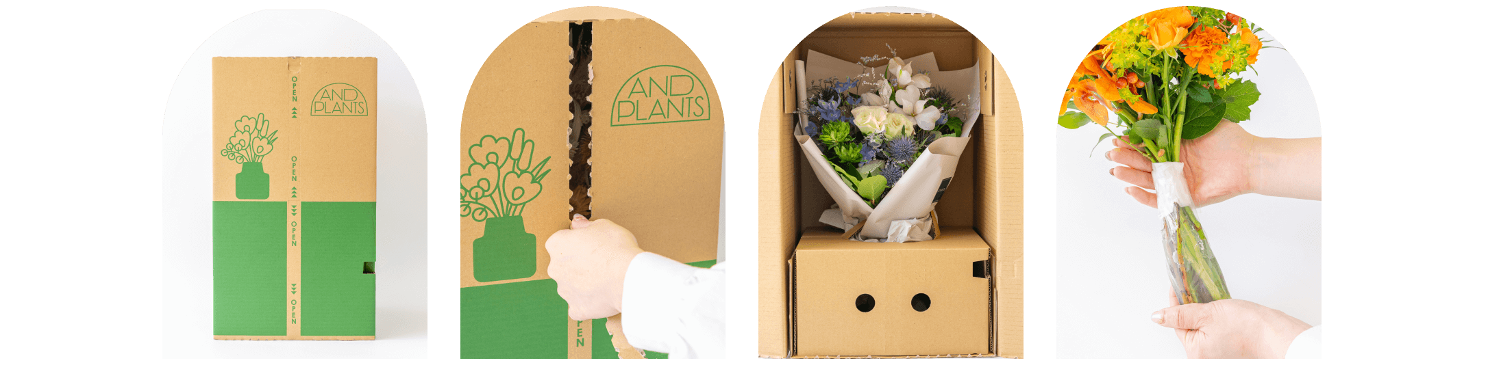 デリケートなブーケの輸送に特化した独自のダンボールを開発。大切なブーケをしっかりと守り、丁寧にお届けします。