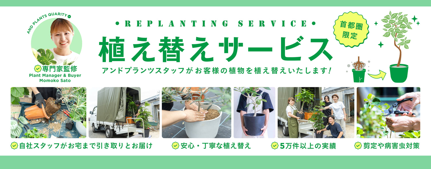 どなたにも安心してご購入いただけるよう、経験豊富なスタッフが無料で植え替えてからお届けします。栄養剤の配合や防虫対策など、品質管理を徹底した土へ植え替えるため安心です。
