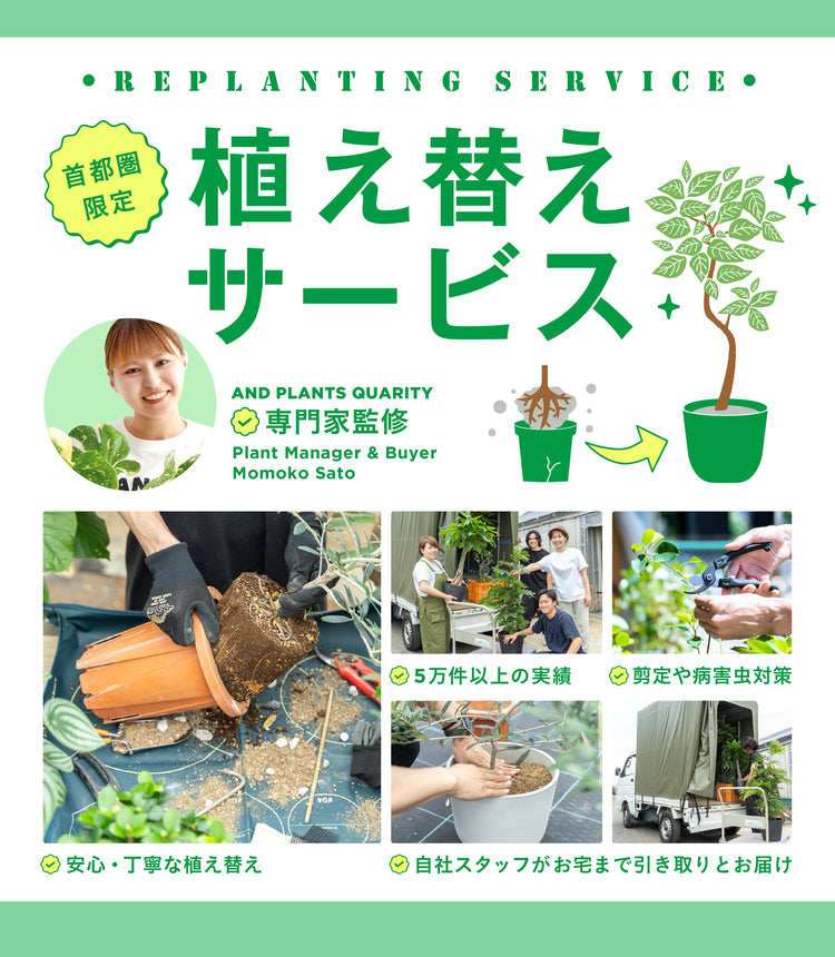 栄養剤の配合や防虫対策など、品質管理を徹底した土へ植え替えるため安心です。