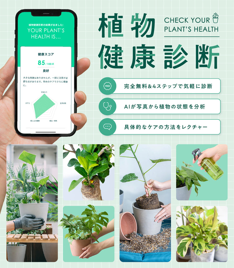 購入前の植物選びから、購入後の植物ケアまで。困ったらいつでも植物の専門家にLINEで相談が可能なので、初心者でも安心です。