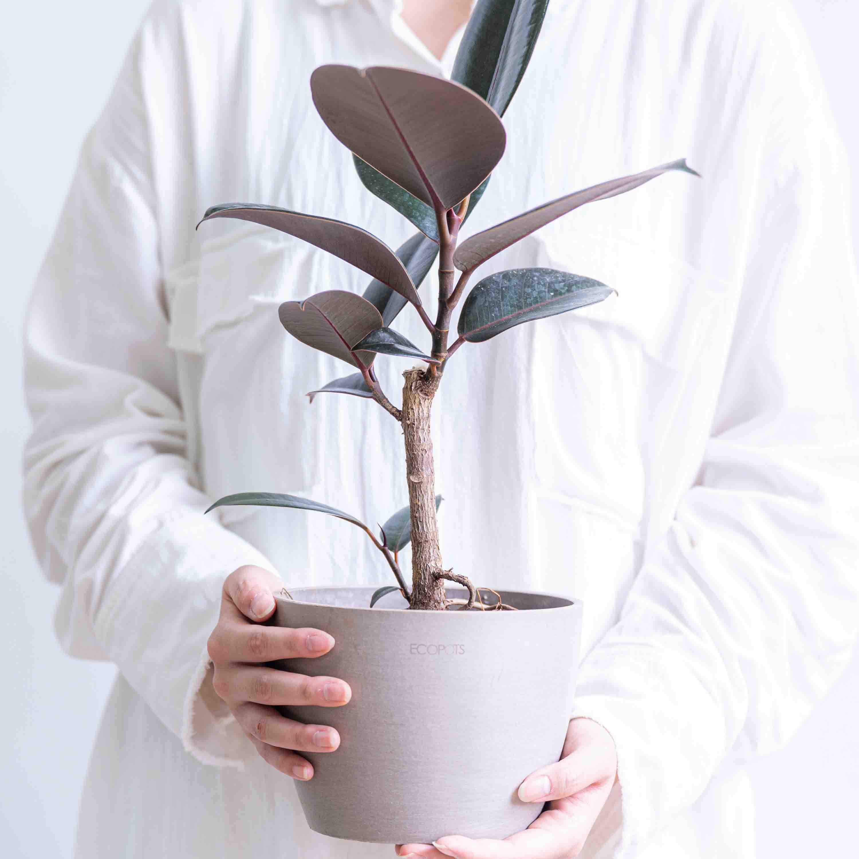 ECOPOTSのサイズは6種類ご用意しています。デスクの上にぴったりなサイズのテーブルプランツから、リビングのアクセントになる大きめの植物まで、さまざまな大きさの植物に対応したプランターを用意しました。