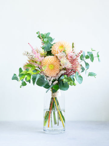 アンドプランツのフローリストが提案する、季節のお花を取り入れた花束です。 1点1点旬のお花をメイン花材とし、そのお花に合った色味の花材やフレッシュな葉物を組み合わせてご提案します。