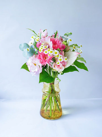 目ではわからない、届いた時に感じる新鮮なお花の香りもお楽しみのひとつです。 届いてすぐに飾って楽しんでいただけるよう、花瓶とセットで購入できるほか、アンドプランツではカスタムオーダー注文機能をご用意しました。