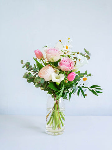 【誕生日ギフト】フローリストにおまかせ 季節の花束 M - ピンク -