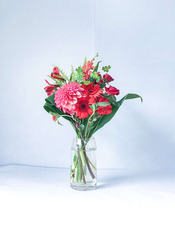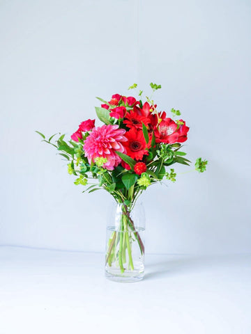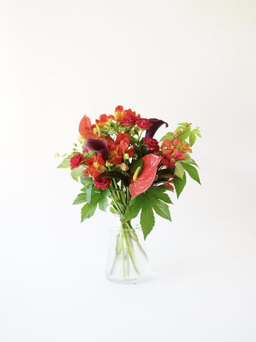 【誕生日ギフト】 フローリストにおまかせ 季節の花束 M - レッド -