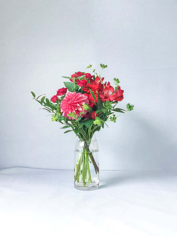 1点1点旬のお花をメイン花材とし、そのお花に合った色味の花材やフレッシュな葉物を組み合わせてご提案します。目ではわからない、届いた時に感じる新鮮なお花の香りもお楽しみのひとつです。届いてすぐに飾って楽しんでいただけるよう、花瓶とセットで購入できるほか、 アンドプランツではカスタムオーダー注文機能をご用意しました。お花屋さんで実際にフローリストに相談しながら花束をオーダーするのに近い体験をWEBで再現しています。