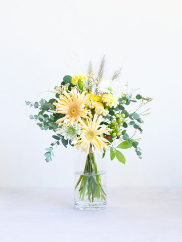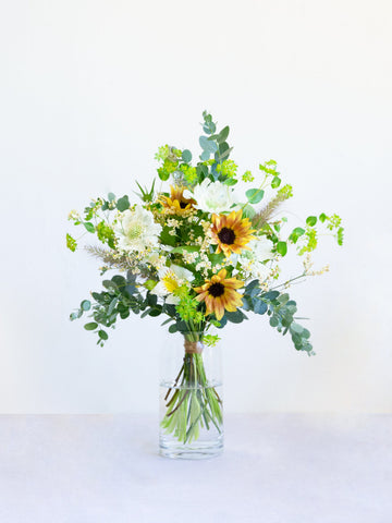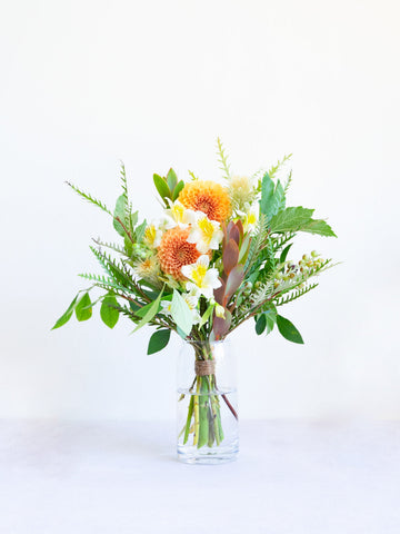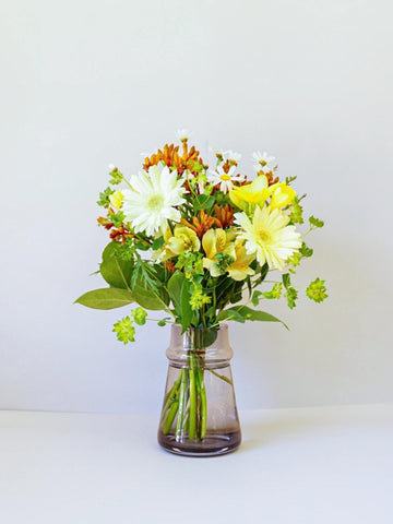 1点1点旬のお花をメイン花材とし、そのお花に合った色味の花材やフレッシュな葉物を組み合わせてご提案します。目ではわからない、届いた時に感じる新鮮なお花の香りもお楽しみのひとつです。 届いてすぐに飾って楽しんでいただけるよう、花瓶とセットで購入できるほか、アンドプランツではカスタムオーダー注文機能をご用意しました。 お花屋さんで実際にフローリストに相談しながら花束をオーダーするのに近い体験をWEBで再現しています。