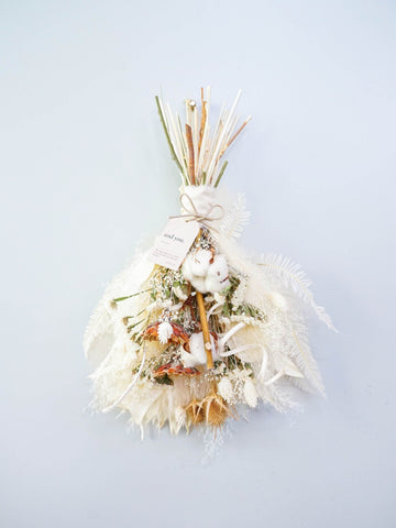 【壁に掛ける】ドライフラワーのスワッグ - ベージュ -