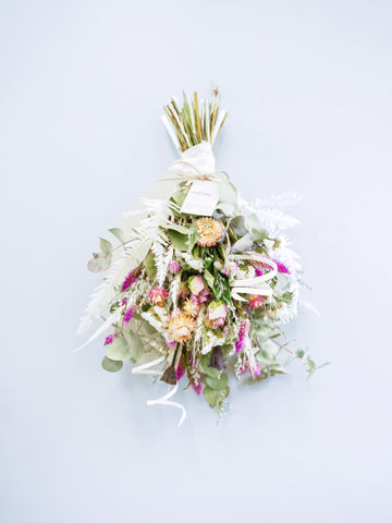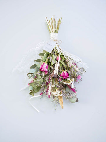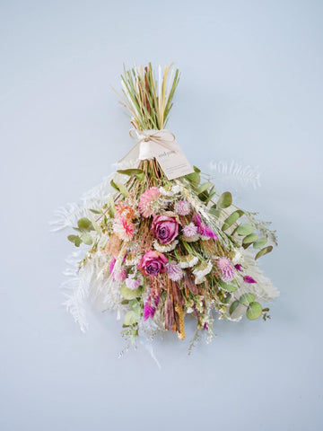 【壁に掛ける】ドライフラワーのスワッグ - ピンク -