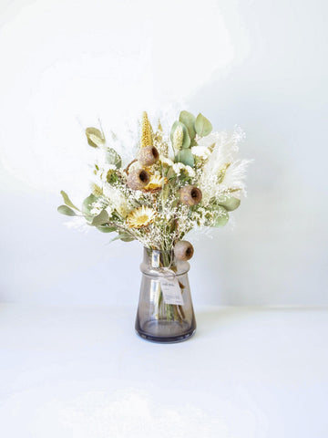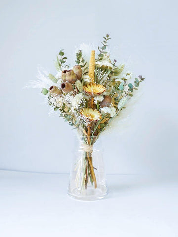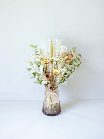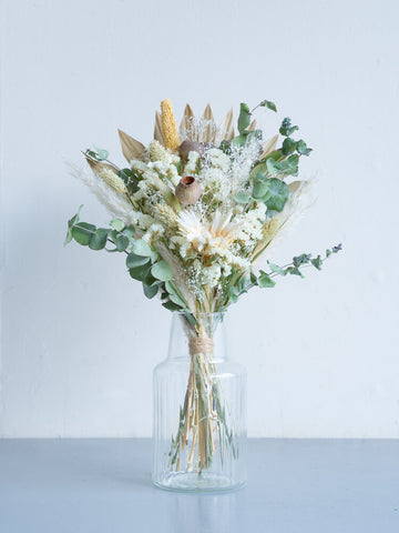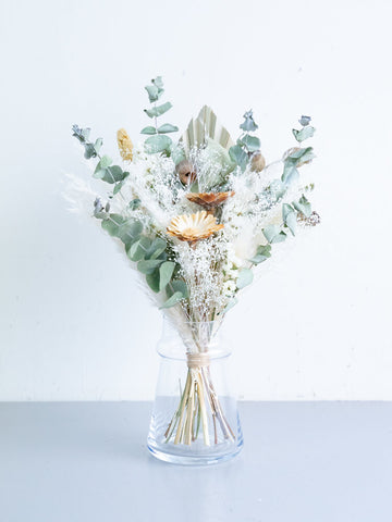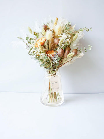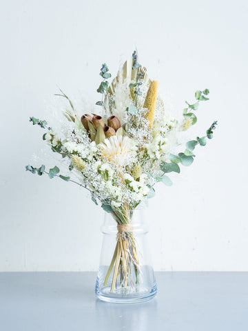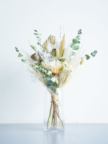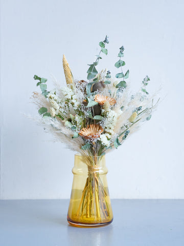 ドライフラワーの花束で食卓やキャビネットを華やかに演出しませんか?AND PLANTSおすすめの花瓶とセットで購入できるほか、ご自宅にある花瓶に入れていただくこともできます。天然の色味が作りだす繊細な美しさをお届けします。