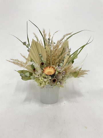AND PLANTSのフローリストが提案する、器に入ったドライフラワーアレンジメントです。
