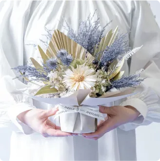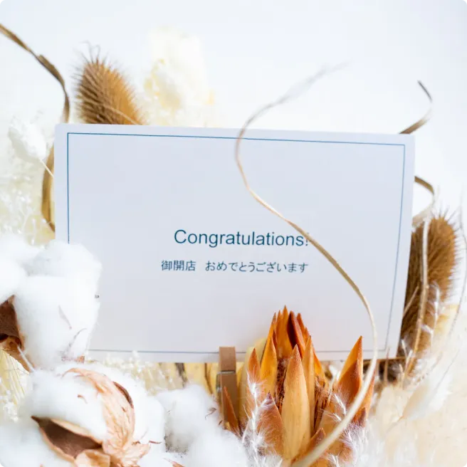 経験豊富なフローリストがひとつひとつ手作りで制作します。ドライフラワーの魅力を存分に引き出すような、ナチュラルで垢抜けた色合いで制作しています。