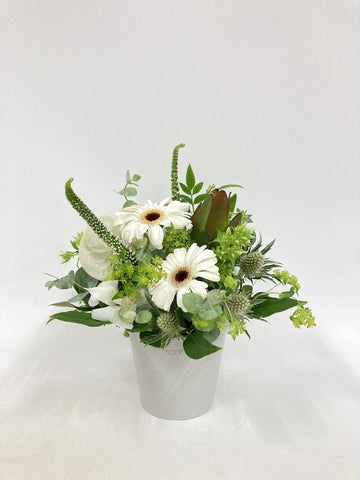 季節のおまかせ生花アレンジ S - グリーン&ホワイト -