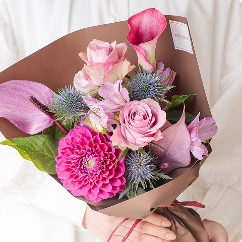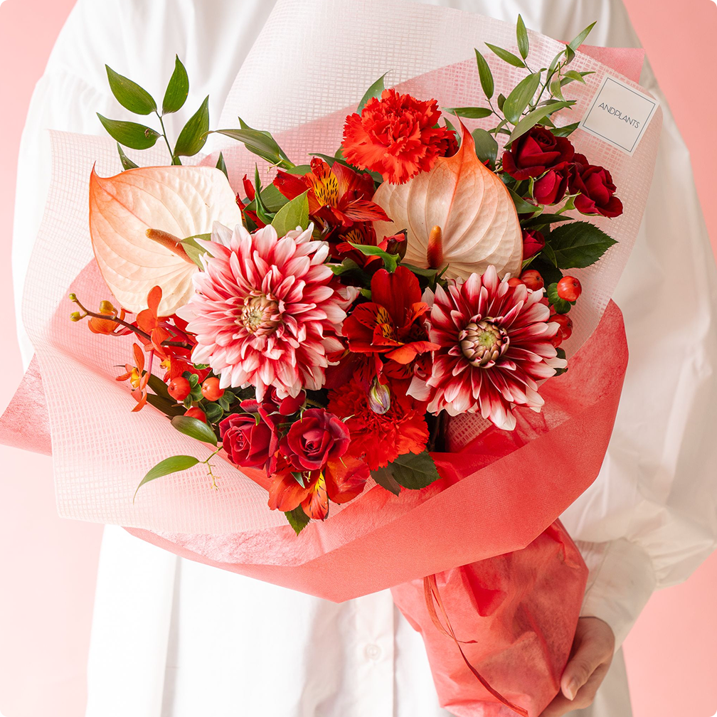 アンドプランツでは、旬の花材の中でも特に希少で洗練された品種や色味にこだわり、フローリストが厳選してアレンジメントを作り上げています。特徴的な形状や、繊細で美しいグラデーションが魅力のお花など、他では手に入らない特別な花材を使用。細部にまでこだわった美しいお花で贈り物としても心に残るブーケやアレンジメントをお届けします。