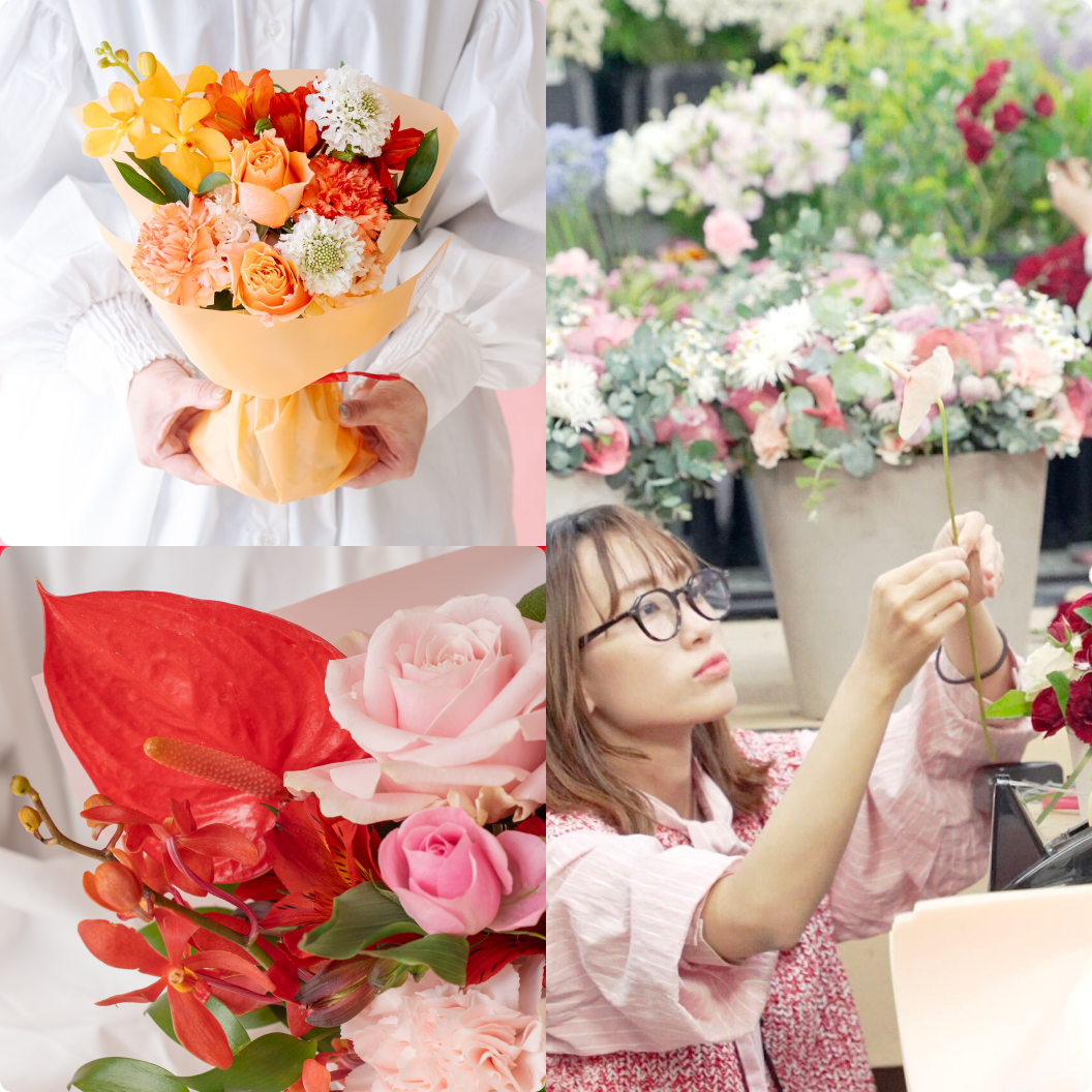 経験豊富なフローリストが一つ一つ手作りで制作いたします。母の日定番のカーネーションも、旬のお花を取り入れ、動きや流れを意識し他にはないアレンジに仕上げています。細部にわたる技術と感性で、洗練されたお花の表現をお届けします。