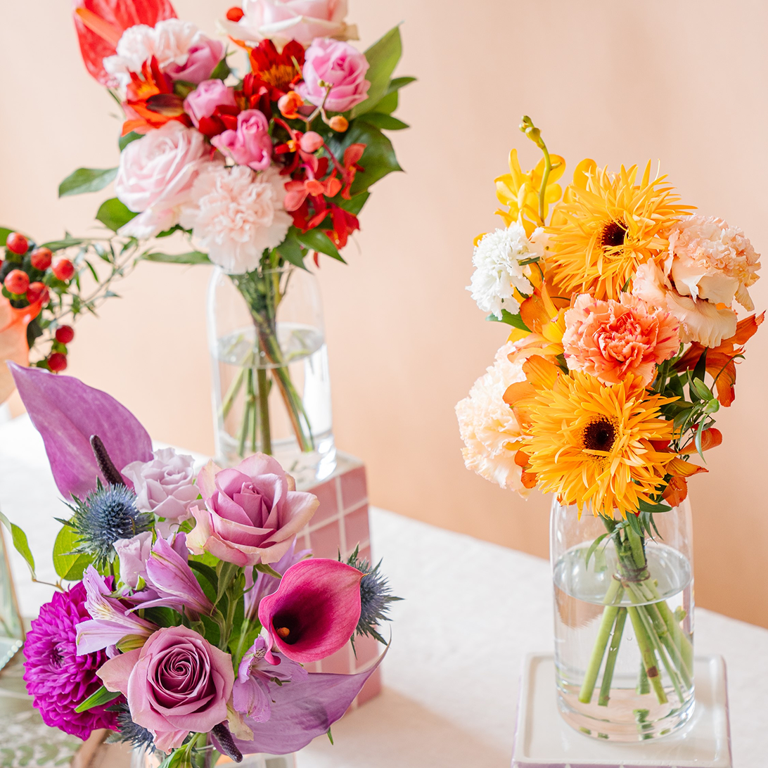 アンドプランツではお花の鮮度確認はもちろんのこと、仕入れるお花の種類にもこだわっています。色のグラデーションが特徴的な花、模様がユニークなものなど品種や色味を厳選し、他では見ない特別な母の日のお花をご用意しています。