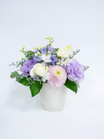 アレンジメントは届いた綺麗な状態でそのまま飾ることができるので、ご葬儀や法要、命日や日々のお供えなどシーンを問わずお供えいただけます。