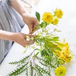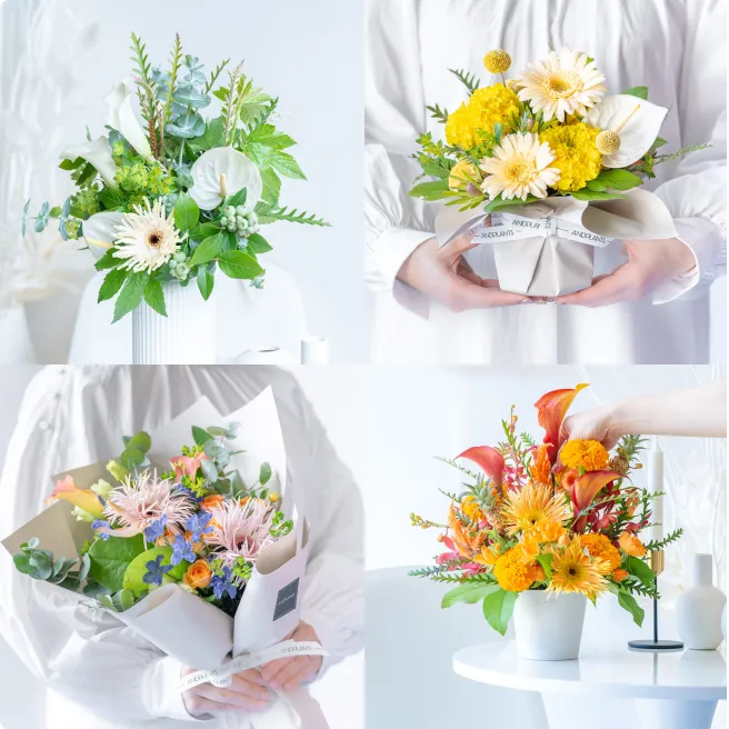 経験豊富なフローリストがひとつひとつ手作りで制作します。その時期の旬のお花を取り入れて、同じものはない新しい組み合わせで制作いたします。