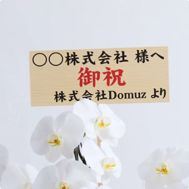 A アンドプランツでは、用途に沿ったテンプレートで立札を無料で作成し、お付けしています。カート画面からお届け先と送り主をご入力いただけます。