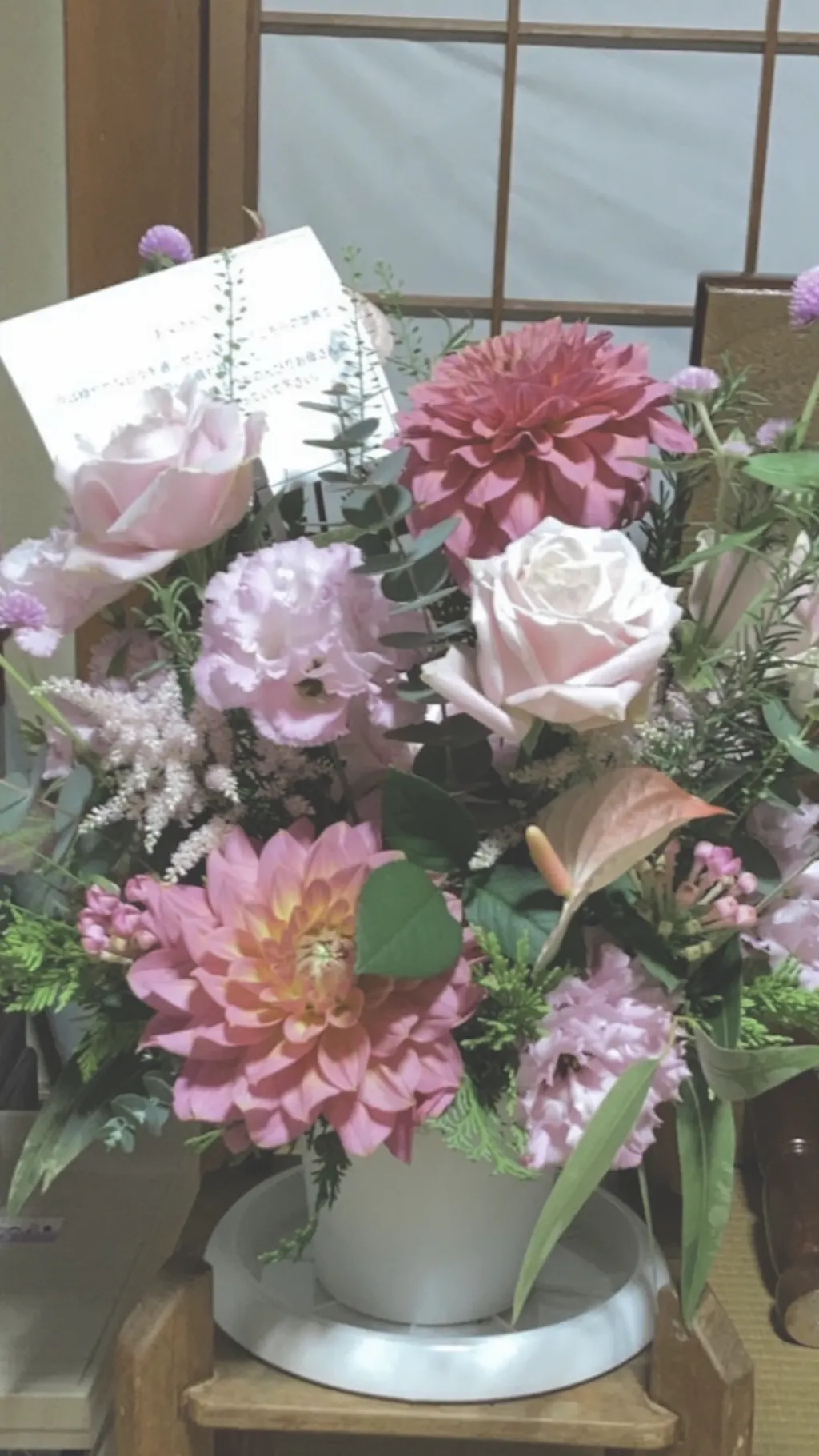 父の一周忌のお供えにお花を贈りたくて初めて注文させていただきました。今の時期には珍しい大きなピンク色のダリアや美しい薔薇が入った華やかで美しいアレンジに母がとても喜び感動していました。お花の状態がとても素晴らしいと思います。